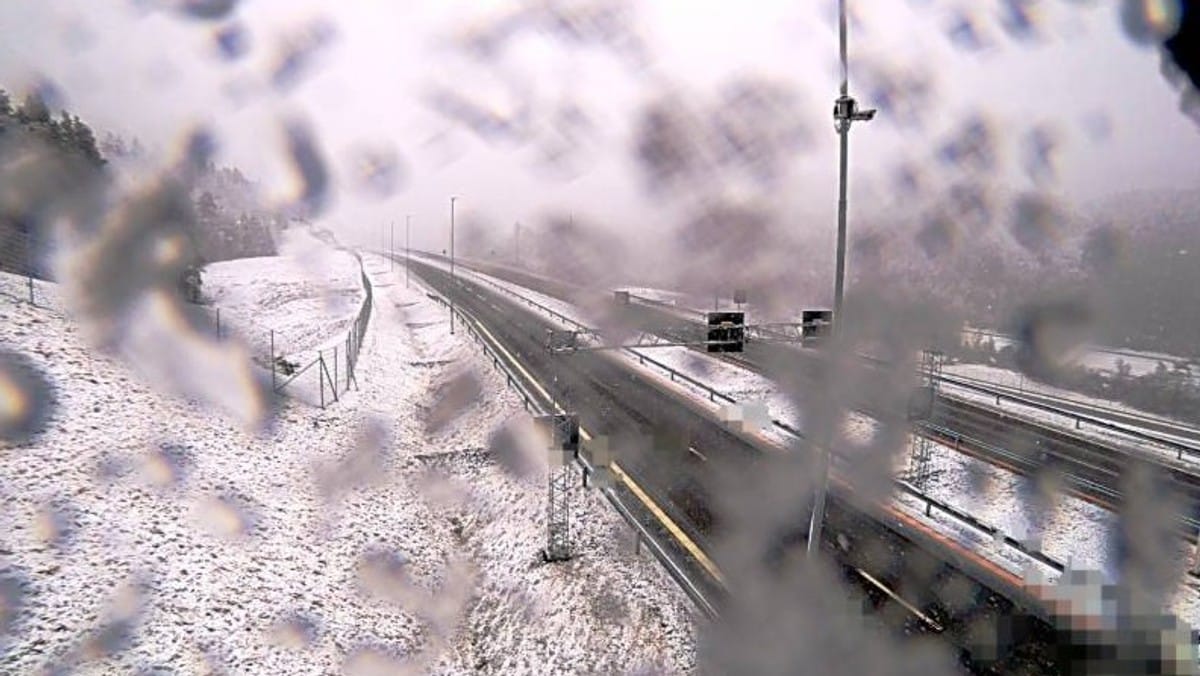 Snøen legger seg langs E39 vest i Agder i morgentimene fredag. Utover ettermiddagen skal det gå over til regn.
