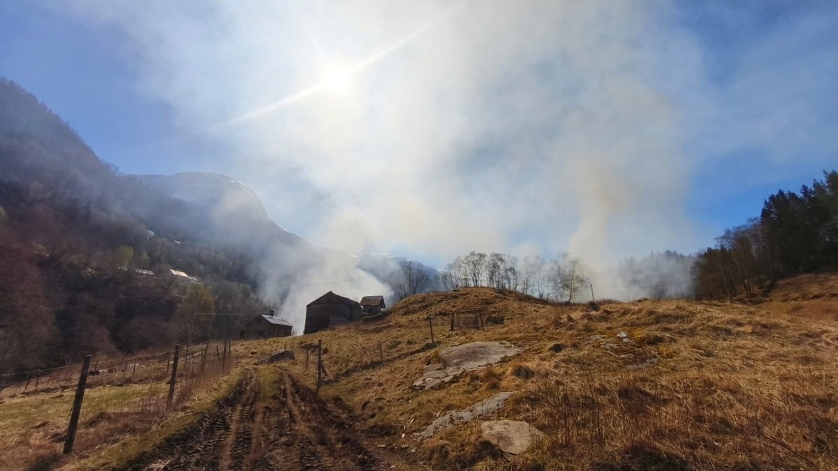 Ein grasbrann spreier seg raskt mellom mellom Feigom og Kroken i Luster.